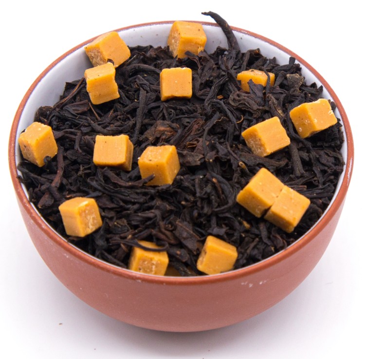 Чай черный индийский крупнолистовой, кусочки карамели, лепестки подсолнечника, ароматизатор.