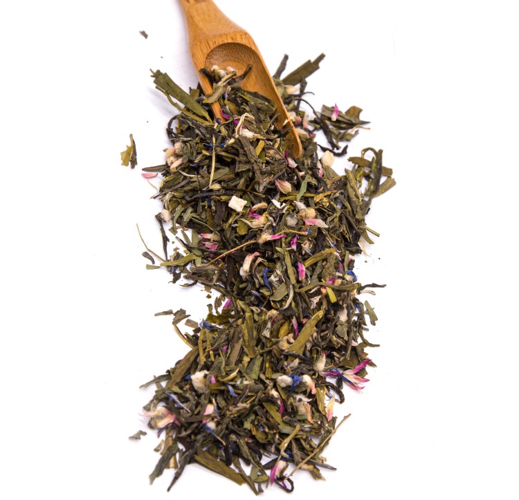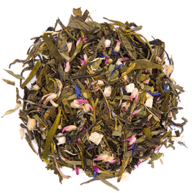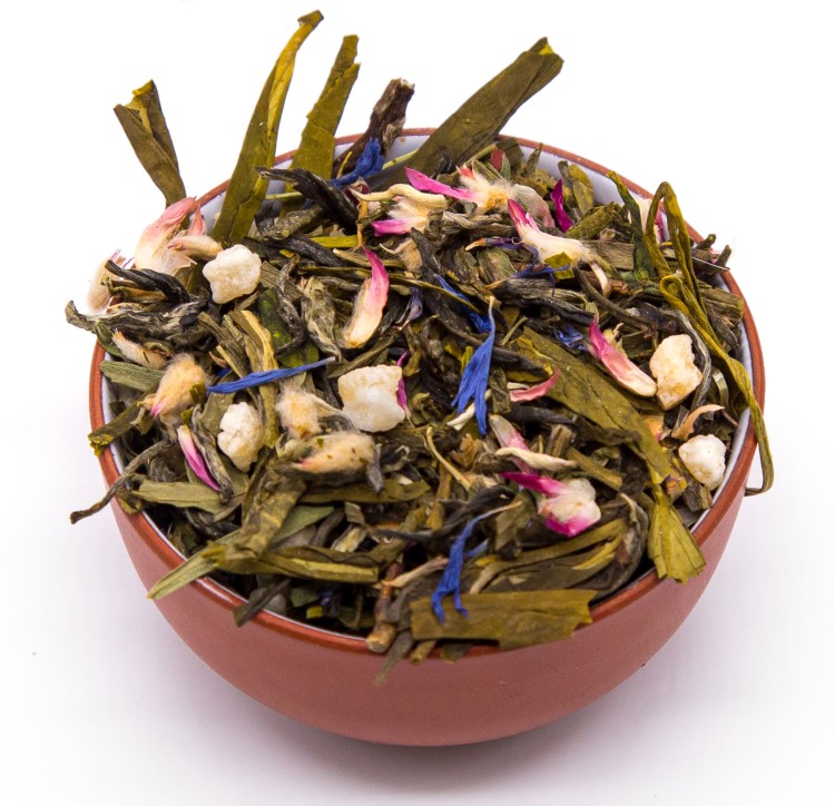 китайский зеленый чай с добавлением лимона цукат, тархуна (эстрагона), гомфрены лепестков и василька лепестков