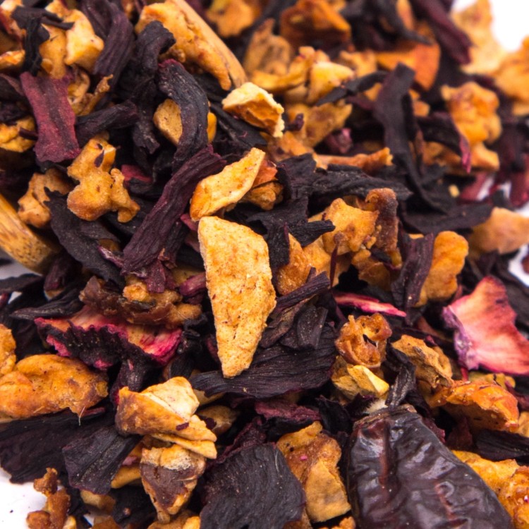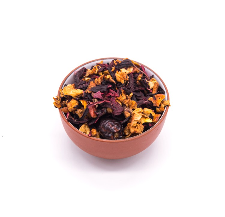 Каркаде, яблоко кусочки, ягоды вишни, смородины лист, натуральный ароматизатор