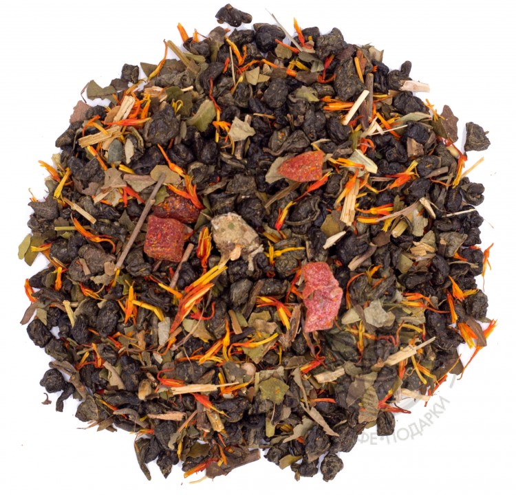 Ганпаудер, папайя, лист земляники, лепестки сафлора, ароматизатор
