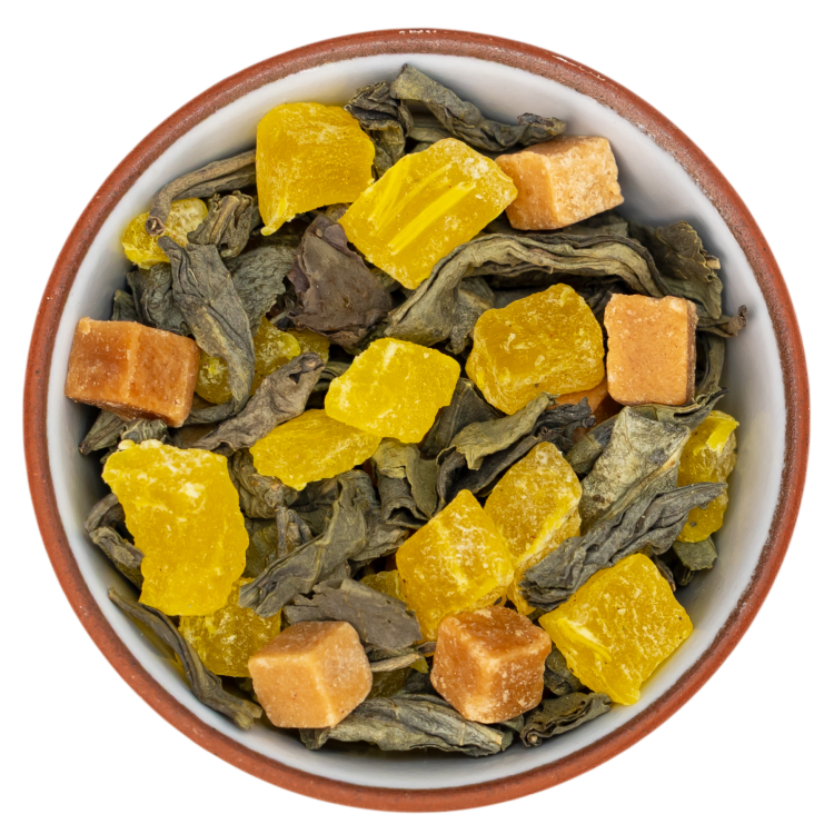 Состав чай зеленый китайский, цукаты ананаса, карамель кусочки, ароматизатор |